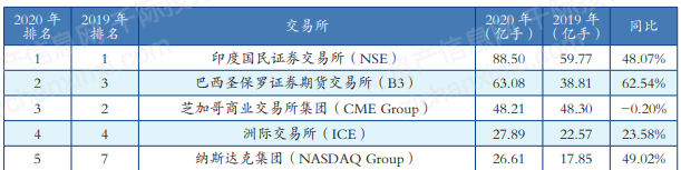 表 2020 年全球前二十大交易所(按场内衍生品成交量排名)