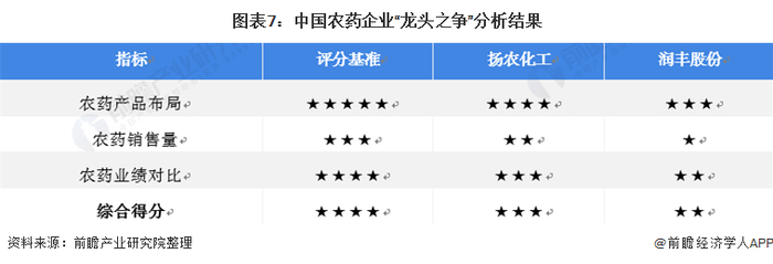 原标题:干货!2021年中国农药行业龙头企业对比:扬农化工PK润丰股份 谁是中国“农药之王”? 来源:前瞻产业研究院