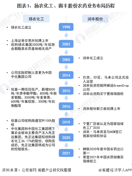 目前,中国农药行业的龙头企业有扬农化工、润丰股份等,两家企业在农药业务上的布局历程如下: