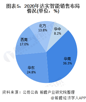 达实智能智能建筑项目侧重大型公共建筑领域。2020年,公司主要营业收入来源于华南与华东,分别占比36.3%与24.8%。