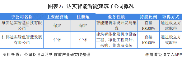 根据公司2020年财报,目前,达实智能有两家100%持股从事智能建筑业务的子公司,均通过设立方式取得,公司其他子公司从事的业务包括咨询、智慧城市建设、数字化医疗、计算机软件设计等: