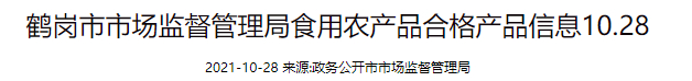 原标题:黑龙江省鹤岗市市场监督管理局公布112批次抽检合格食用农产品信息