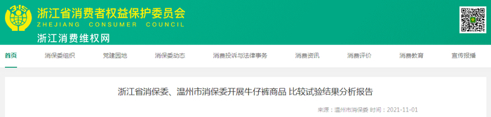 原标题:浙江省消保委、温州市消保委发布牛仔裤商品比较试验结果分析报告