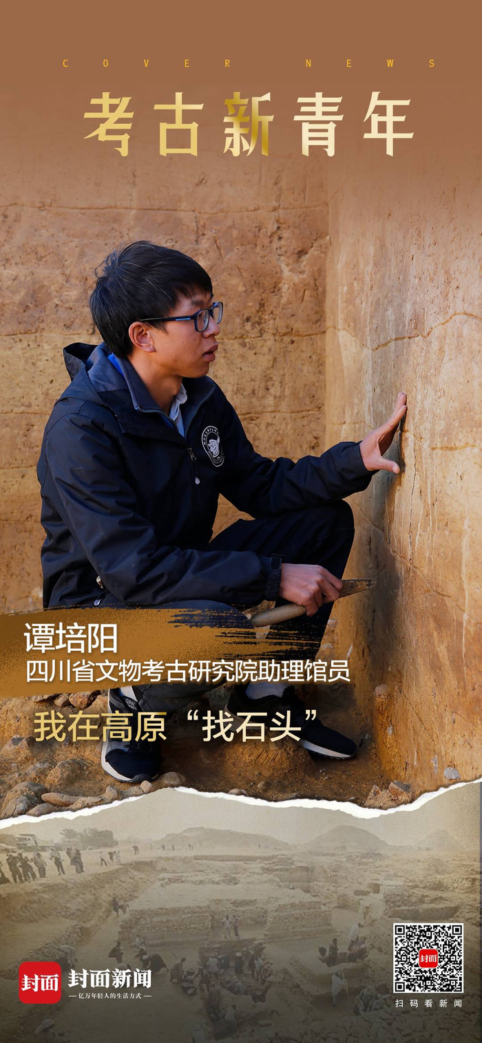 在这里,一支来自四川省文物考古研究院和北京大学的联合考古队正进行着第一阶段野外发掘的收尾工作。四川省文物考古研究院助理馆员谭培阳就是其中一员。穿越川西高原,登上高山,淌过河流,他和他的小伙伴们寻找一件件石器,用它们追溯远古的人类记忆。