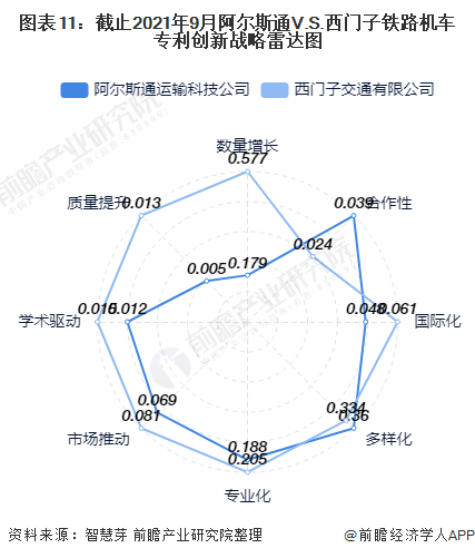 整体来看,阿尔斯通铁路机车技术在合作性和多样性具有相对竞争优势,西门子铁路机车技术则在数量增长、质量提升、学术驱动、市场驱动、专业化和国际化上具有相对竞争优势。