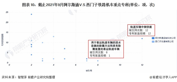 (6)重点专利布局对比:阿尔斯通重点布局的专利被引用次数和专利家族规模较多