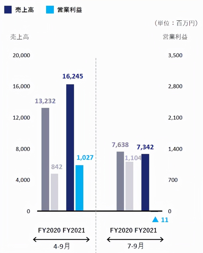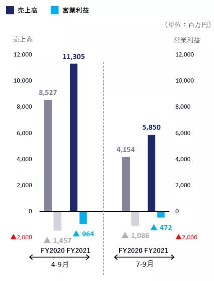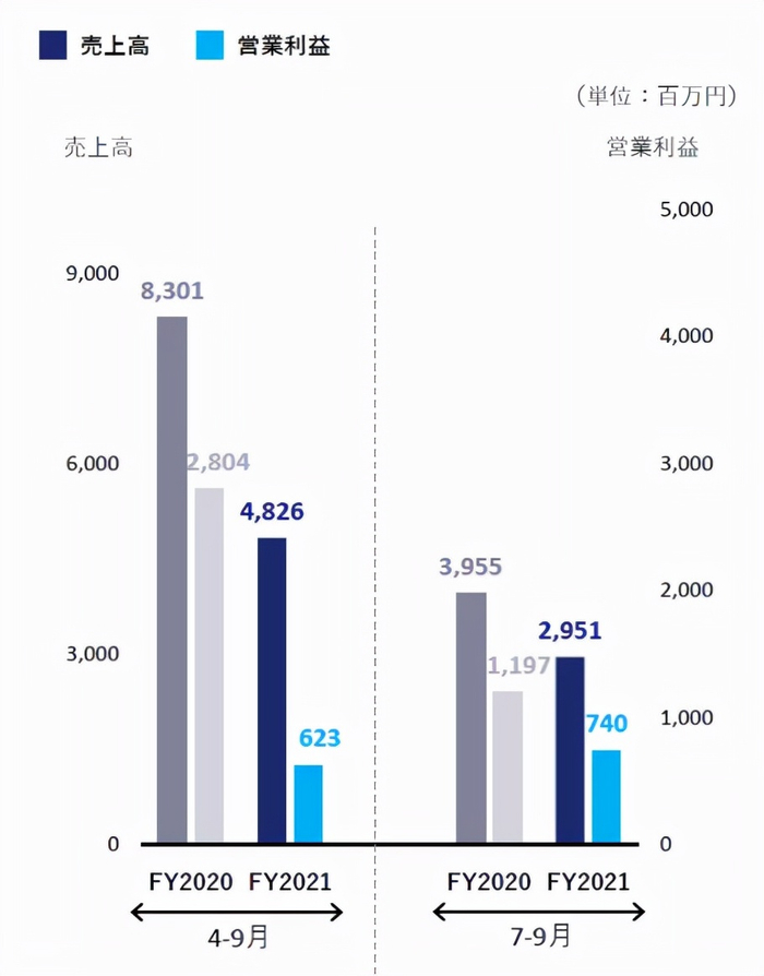二季度销售额为113亿500万日元,同比增加32.6%,营业损失为9亿6400万日元,上年同期营业损失14亿5700万日元。