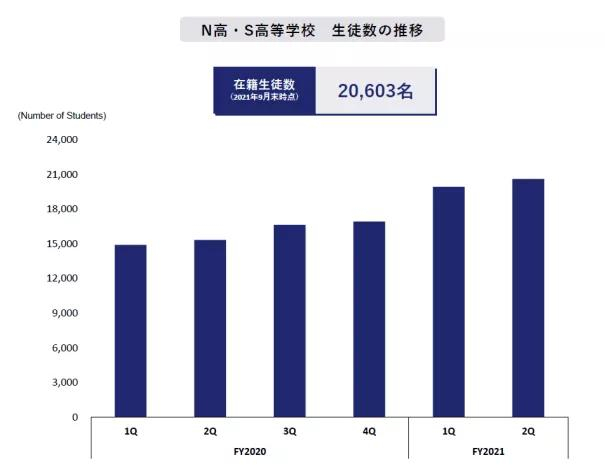 在教育事业方面,网络通信制高中的N高等学校、S高等学校的学生数量保持持续增长态势,由于向该校提供教育内容的DWANGO公司做出收益贡献,教育事业继续顺利发展。