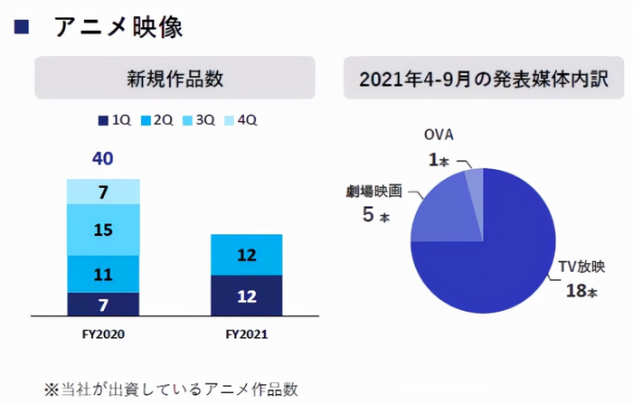 角川继续加强动画制作。本财年已经在第1季度投入12部,第2季度投入12部新作,均超过去年同期水平。