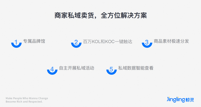 为更迅速、有效地帮助商家完成私域流量的转化,鲸灵集团推出SaaS私域精灵,特为商家建立“专属品牌馆”,并批量赋能商家与百万KOC建立深层次链接,增加用户粘性,提高流量转化,使品牌商家能够在激烈的竞争中得以生存。