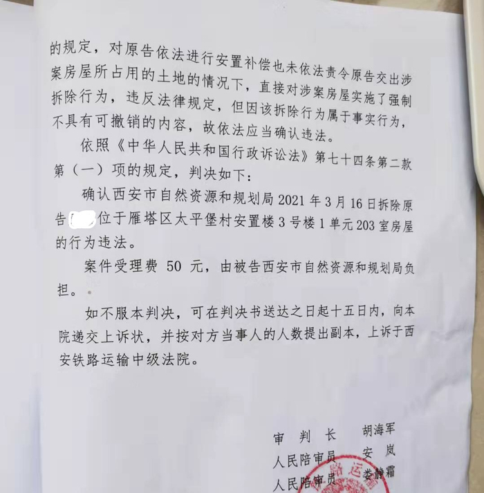 原标题:未安置补偿便强拆村民房屋,西安市自然资源和规划局被判违法