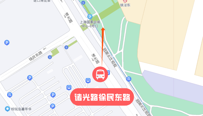 建议线路:从崧泽大道诸光路港湾式公交站点出发,经诸光路地道至北广场,前往国家会展中心北登录厅。