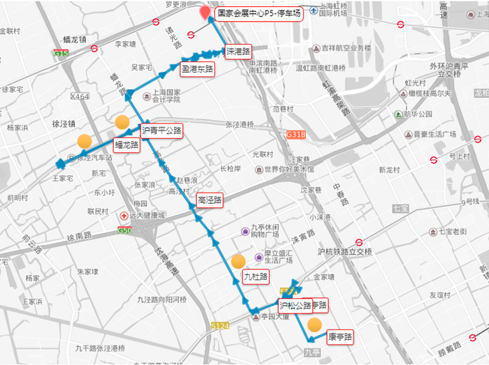 崧泽大道诸光路口出租车下客点—国家会展中心