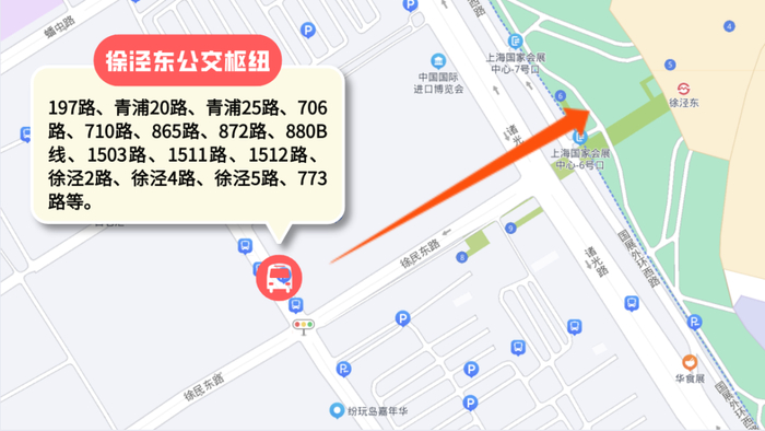 停靠线路(13条):197路、青浦20路、青浦25路、706路、710路、865路、1503路、1511路、1512路、徐泾2路、徐泾4路、徐泾5路、773路。