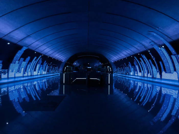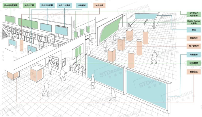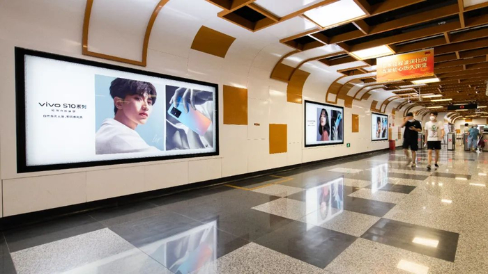 当乘客们从一段缓慢的扶梯下楼,来到视野开阔的动感画廊通道,在通行的过程中很难不被眼前广告吸引。