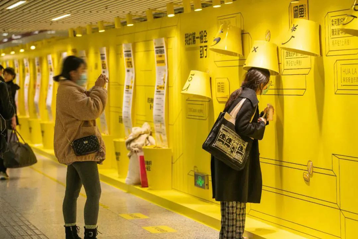 乘客每天两点一线穿梭在地铁之中,重复的路线容易造成疲惫乏味的心理状态。在这种情况下,环境中的一点新鲜事物、一点新的变化都能引起乘客们的猎奇心理,让乘客在平凡的生活框架中找到心理认同感。