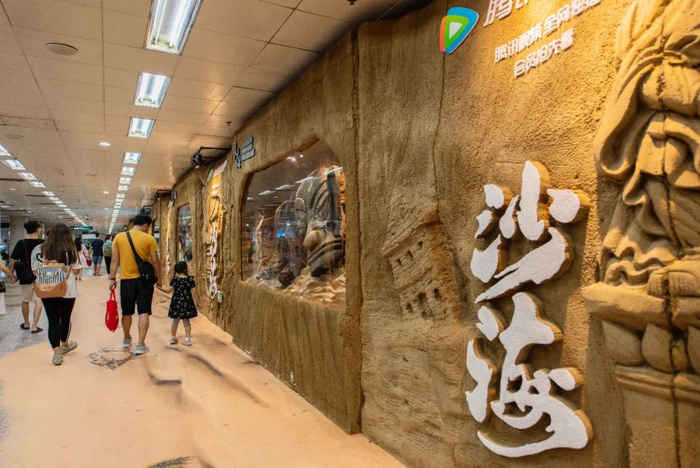 通过改造一整条传统灯箱长廊,探险题材网剧《沙海》的剧组将剧中场景搬到了地铁内,营造一个真实的剧中世界。乘客们在通行过程中边走边看,就能了解剧情的五大主题,轻松获取品牌在该案例中传递的讯息。