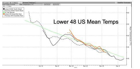预计,下个月美国平均气温将跳水,降至48华氏度以下。