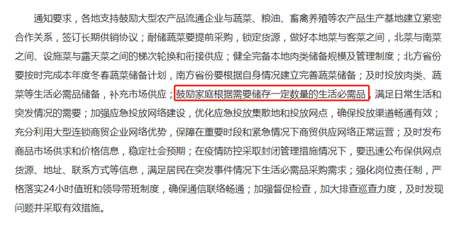 11月1日,商务部网站发布了一则消息《商务部部署今冬明春蔬菜等生活必需品市场保供稳价工作》,其中一句“鼓励家庭根据需要储存一定数量的生活必需品,满足日常生活和突发情况的需要”备受网络关注,在社交平台以刷屏之势被转载。