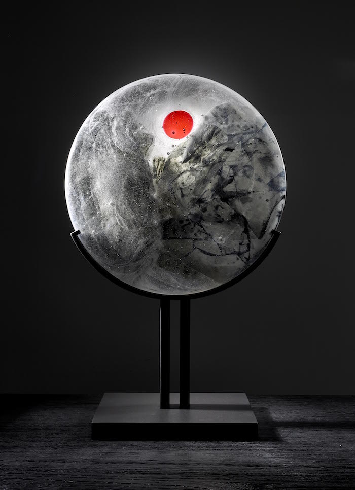 在“一抹红”系列中,张毅用“一抹红”颠覆了绘画的平面概念,琉璃材质的通透,让自然的光线照进画作,在釉料渲染中,画笔的层次,无比清晰地显露出来。云、雾、海浪,在聚散之间,在具象与抽象之间翻腾。