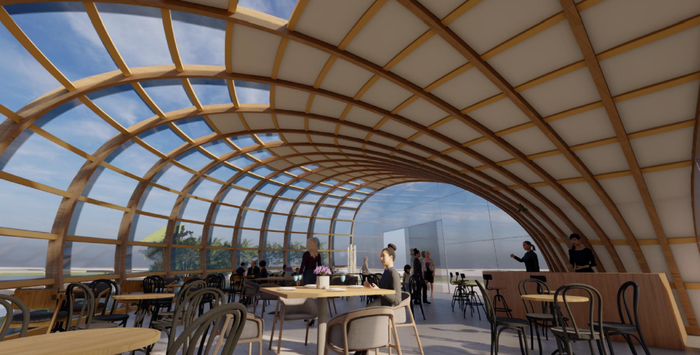 莫比乌斯环是以外太空的星际空间为场景意象,依托于连续起伏的科学公园的地景营造,设计将莫比乌斯环横架于山峦之上,贯穿于不同的科学主题分区,形成犹如悬浮的飞碟的造型,充分体现现代科技的主题,并将各个不同特色主题区串联起来。