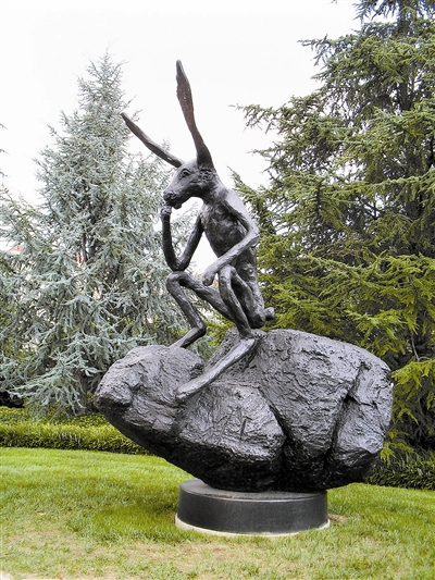 当2007年在艺术基金会资助下,他的一件新作品《岩石上的思想者》被放置在位于美国圣路易斯华盛顿大学校园内,出现了后现代艺术和传统校园文化碰撞的新故事。在这件作品中,兔子一本正经地摆出《思想者》中的造型,显现出对罗丹经典的大胆颠覆,貌似严肃的形象和兔子在人们心目中较低的地位形成鲜明反差,产生强烈喜剧效果。
