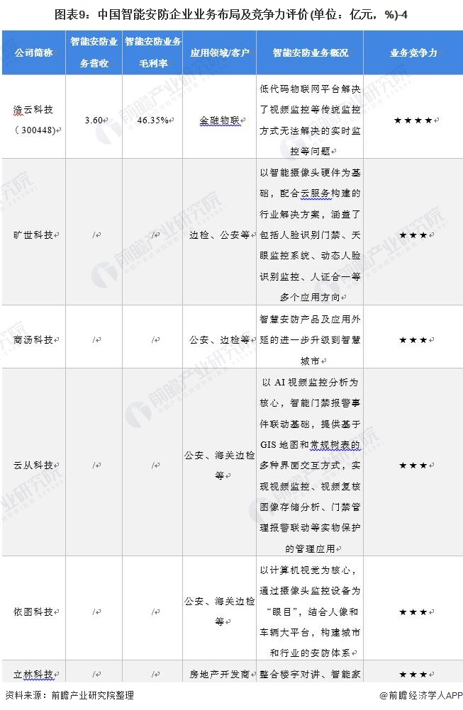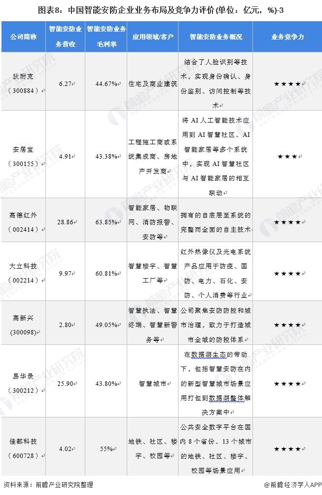 4、中国智能安防行业企业布局及竞争力评价