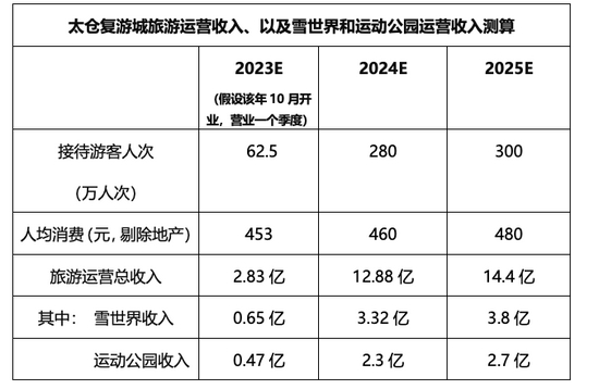 预计到2025年,太仓复游城接待游客人次约300万人次,人均消费达485元,对应收入贡献14.4亿。