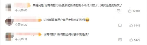 有的表示这是用户争取得来的胜利,但也有网友担心,官方提出现有功能可以永久使用,但新功能可能还是需要付费。