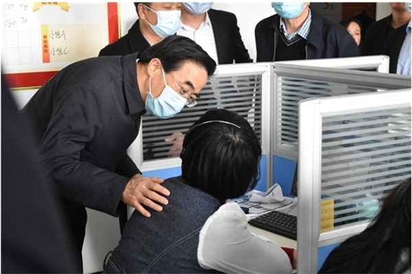 程凯副理事长参观呼叫中心并与残疾人员亲切交流