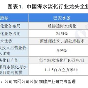 原标题:干货!2021年中国海水淡化行业龙头企业分析——巴安水务:全国海水淡化技术第一 来源:前瞻产业研究院