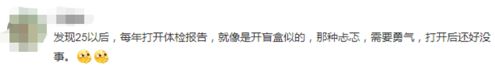 一项近2000名18-35岁的青年参与的调查显示, 超过6成的受访青年有过害怕看体检报告的经历,甚至有人因此都 “不愿”或者“没有时间”去参加体检。有网友戏称,“每次看体检报告就像开盲盒一样,谁知道能开出啥玩意儿来。”小编则认为,看体检报告的那一瞬间,比开盲盒刺激多了,生怕自己开出“隐藏款”。