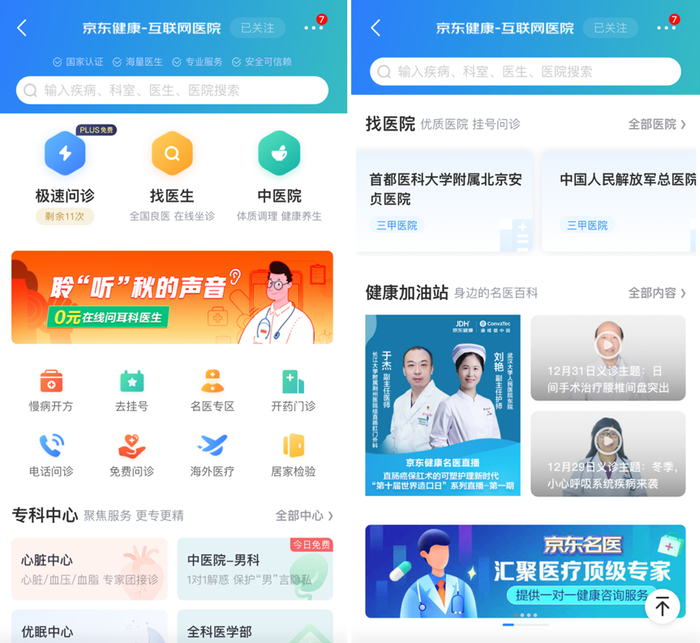 正如医生所说,如今,已经有互联网医疗公司推出了正规专业的网上咨询平台,比如京东健康互联网医院等。这种平台的在线问诊服务可以提供7x24小时的健康咨询,解决了有些人想看病却没时间、不敢去、嫌麻烦的难题,只要你需要,随时可以联系到医生来咨询任何健康疑虑,还不用害怕自己“白大褂综合征”发作,这可比“上网自诊”靠谱多了。