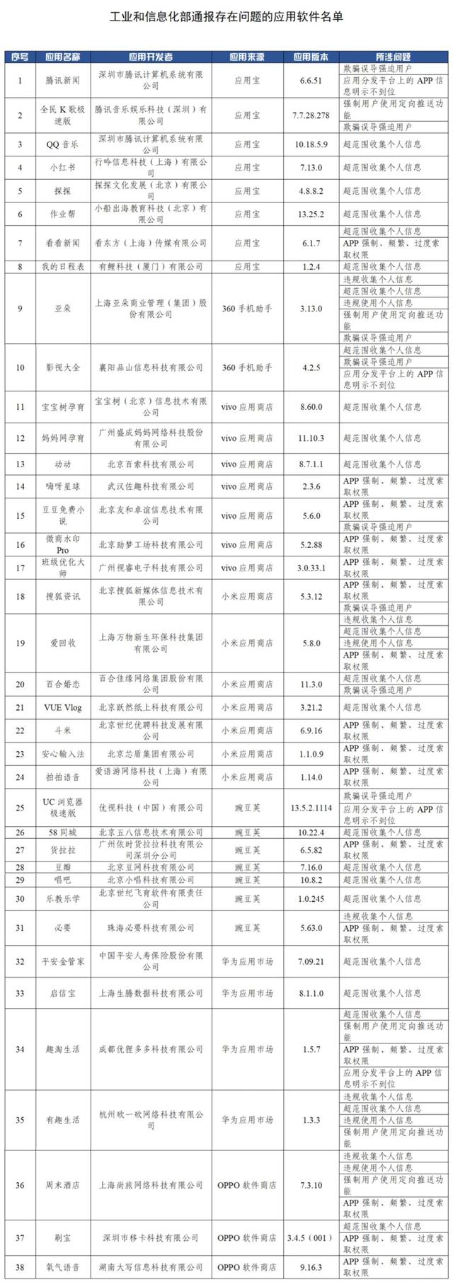 原标题:工信部通报38款违规APP 腾讯新闻、QQ音乐、小红书等在列