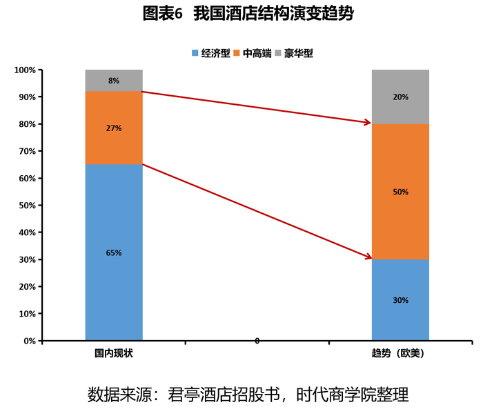 住宿需求源于人的出行旅游。建国之初至21世纪前,为满足政府公务出行及外宾接待,我国酒店行业呈现“招待所+五星级”哑铃式供给结构。2000年后,随着市场经济的逐步推进与商务活动繁荣,为满足“招待所太差,五星级太贵”的终端需求,经济型酒店应运而生,锦江之星、汉庭、7天、如家等经济型连锁酒店品牌开始暂露头角。