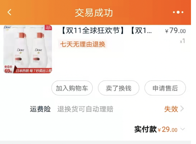我奉献给“双十一”的精力越来越多,然而“双十一”的价格却一年比一年贵。我印象最深就是一款多芬的洁面产品,今年“双十一”价格是79元两瓶,满减下来价格也是50-60元两瓶,但2016年“双十一”价格是29元两瓶,还不用凑满减,太离谱了。