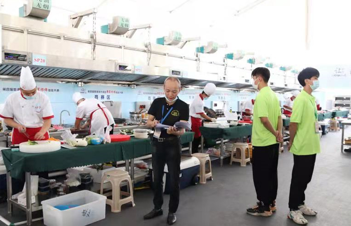 走进本届“粤菜师傅”技能大赛暨粤菜产业文化交流活动的举办地——汕头潮博馆,大堂内立有一块“‘粤菜师傅’工程,潮汕牛更牛”的巨大宣传展板,不仅介绍了获取牛肉美味的具体方法、潮汕牛肉的特色品种及市场潜力,还对如何打造潮汕牛肉小吃品牌,促进“潮汕牛”上下游产业全方位发展提出了可行性的建议及措施。据了解,这块“潮汕牛更牛”展板内容的作者,就是此次粤港澳大湾区“粤菜师傅”技能大赛中式烹调的裁判张树茂。他此前因在媒体开设“老茂侃吃”专栏获得当地宣传部门的新闻奖而为市民所熟知。其实,作为汕头餐饮界的知名人物,张树茂有着汕头市非物质文化遗产项目潮菜(潮州菜)烹饪技艺代表性传承人、国家职业技能鉴定高级考评员、中式烹调高级技师、广东烹饪大师、汕头市技术能手等诸多头衔,目前担任潮汕多所职业技术院校的特聘教师。
