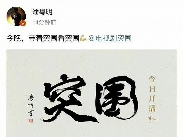 除了表演需要之外,明星为剧集题名也成为了常态化的现象。近日正在热播的《突围》以及《你是我的荣耀》《鬼吹灯》等剧集片名是由潘粤明所写,《长安十二时辰》片头剧名以及辰名是由祖峰所写;巩俐为《夺冠》手写歌词、助威口号。