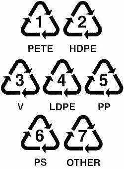 大家如果仔细观察的话,就会发现塑料杯底通常有个三角形的标志,里面的数字代表着不一样的材质: