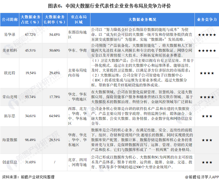 本文核心数据:大数据、竞争层次、产业结构、应用领域分布、区域集中度、业务竞争力、五力模型分析等
