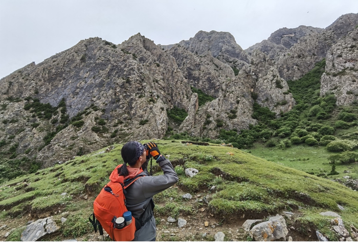 胡珺涵在甘加进行野外调查。本文图片除特殊标注外,均来自善觉甘加环保志愿者团队。