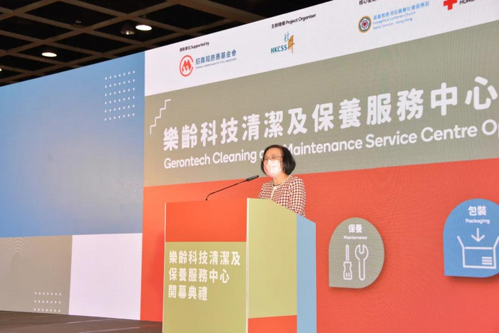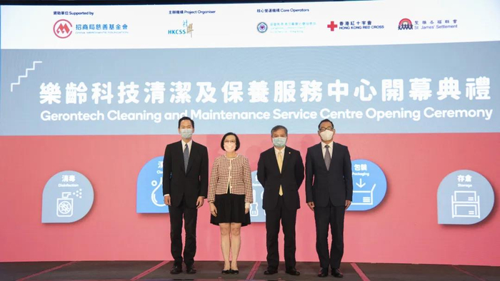 图片11月4日上午,借香港第五届“乐龄科技博览暨高峰会”盛大举办之际,由招商局慈善基金会参与支持、香港社会服务联会(香港社联)开设的“乐龄科技清洁及保养服务中心”在香港会议展览中心启幕。香港特区政府食物及卫生局局长陈肇始,中央政府驻港联络办经济部副部长郭韶伟,招商局集团副总经理、招商局慈善基金会理事王宏及香港社联主席陈智思出席并主礼活动。