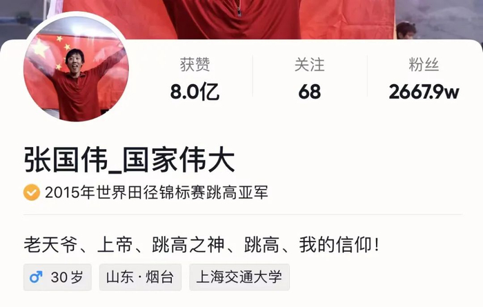 如今短短两个月过去,张国伟的粉丝又增加了200多万,突破2600万。在“网红”这条赛道上,张国伟飞速打卡里程碑。