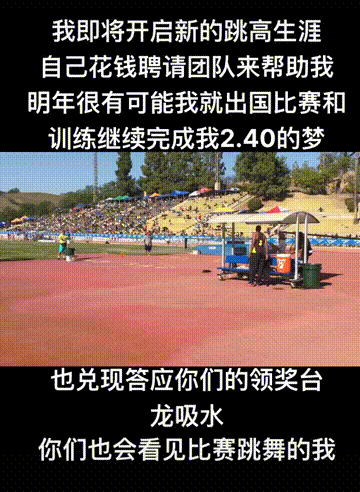 “明年很有可能就出国比赛和训练,继续完成我2.40的梦,也答应你们的领奖台龙吸水,你们也会看见比赛跳舞的我。”