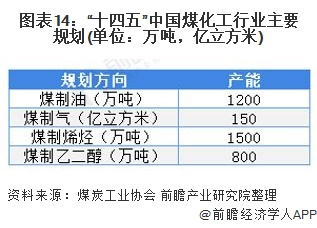根据煤炭工业协会发布的的《现代煤化工“十四五”发展指导意见》,我国在“十四五”期间的发展目标是建成煤制气产能150亿立方米,煤制油产能1200万吨,煤制烯烃产能1500万吨,煤制乙二醇产能800万吨,完成百万吨级煤制芳烃、煤制乙醇、百万吨级煤焦油深加工、千万吨级低阶煤分质分级利用示范,建成3000万吨长焰煤热解分质分级清洁利用产能规模。转化煤量达到1.6亿吨标煤左右