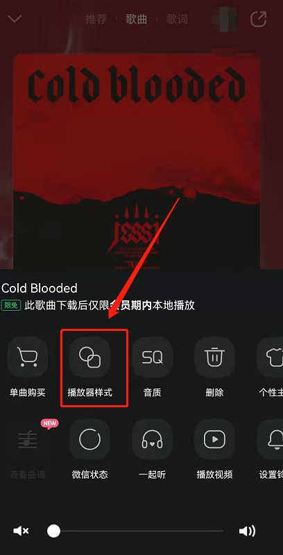 2、然后在下方弹出的选项中点击“播放器样式”。