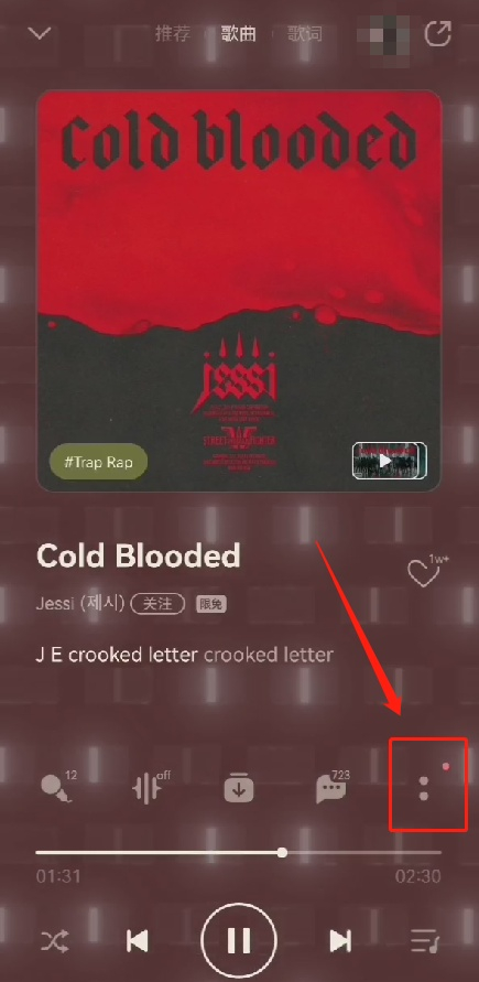 1、打开QQ音乐,随意点击一首歌曲进行播放,动态光效如下所示。想要的关闭的话,先点击播放页中竖着的“:”按钮。