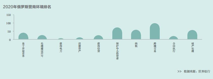 从营商环境方面看,根据《2020年营商环境报告》,俄罗斯营商环境位列全球第28名,处于全球头部。世界经济论坛《2019年全球竞争力报告》显示,俄罗斯在全球最具竞争力的141个国家和地区中,位列第43位。