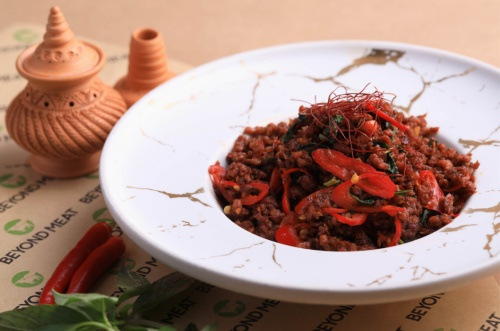 圣罗勒炒“植物肉”在泰国经典的肉碎炒菜基础上,将肉碎调换为脂肪更低的植物肉,用圣罗勒、柠檬叶、辣椒、耗油等调料炒制,植物肉的肉香被完全激发出来,搭配泰国香米食用,香辣又下饭。泰式“植物肉”炒饭将植物肉、泰国香米、泰国时蔬、蛋皮和圣罗勒一起炒制,加以耗油、酱油调味,鲜香十足,满足既想吃碳水,又不想长肉的你。
