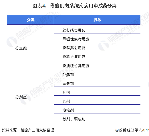 骨骼肌肉系统疾病用中成药剂型中,贴膏剂和胶囊剂占比较高